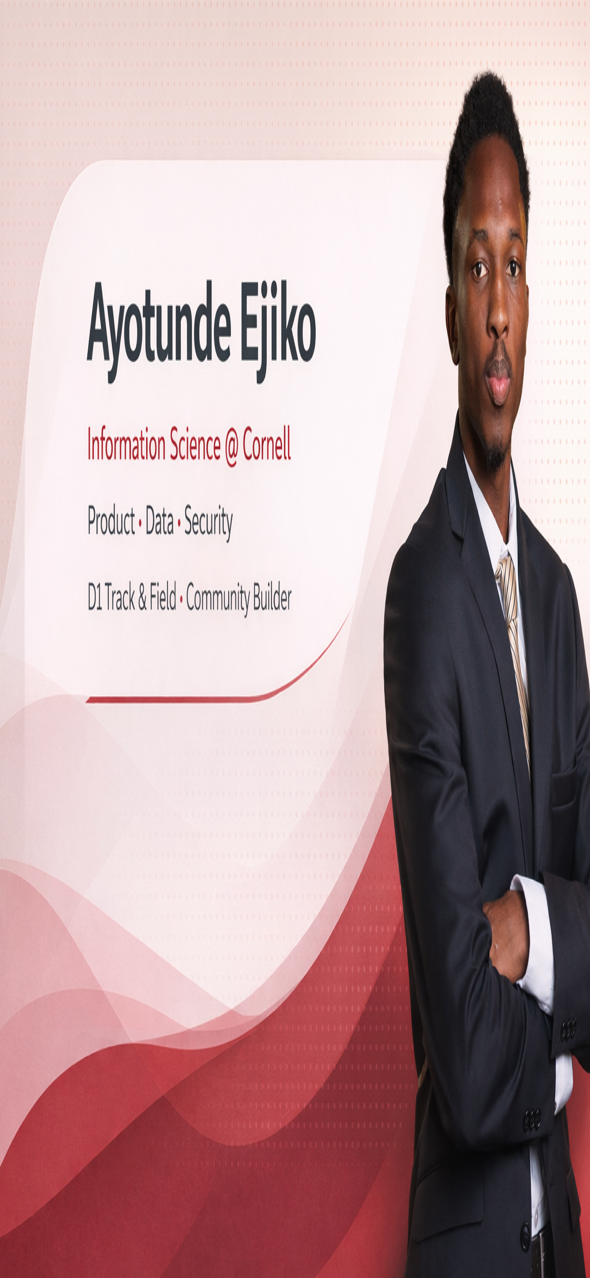 Data, product, cybersecurity, policy, and student leadership.